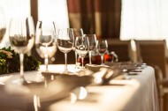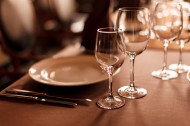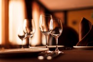 摆在餐桌上的红酒杯图片