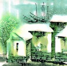 江南水乡冬天水墨图片