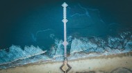 海浪拍打海滩俯视图图片
