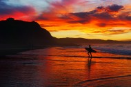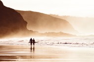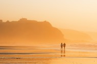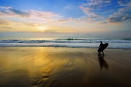 海滩黄昏行走图片