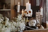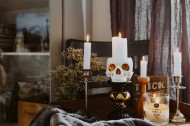 万圣节的装饰品和蜡烛图片