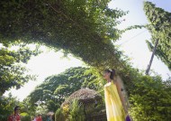 女性在清新绿色大自然度假图片大全