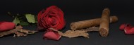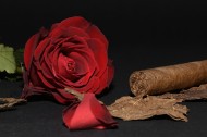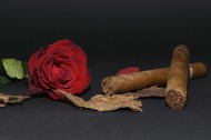 雪茄、玫瑰和啤酒放置一起图片