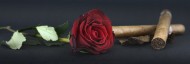 雪茄、玫瑰和啤酒放置一起图片