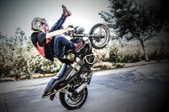 正在训练的摩托车赛车手图片