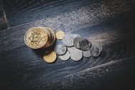 虚拟货币和硬币还有信用卡放在一起图片