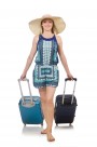 手拿旅行箱的美女图片大全