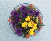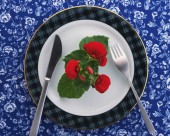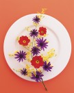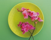 用花卉丝带装饰盘子的艺术摄影图片